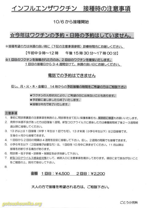 2015.9.2 インフルエンザワクチンの予約についてをUPしました。下記・別ページをご覧下さい。