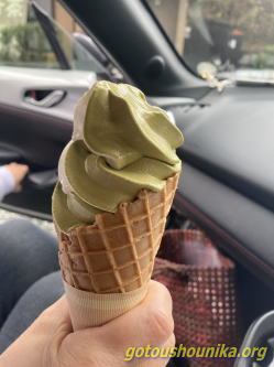 毎度のアイスです。気温は15℃あり、車の中は暖かいので冬でもアイスです。